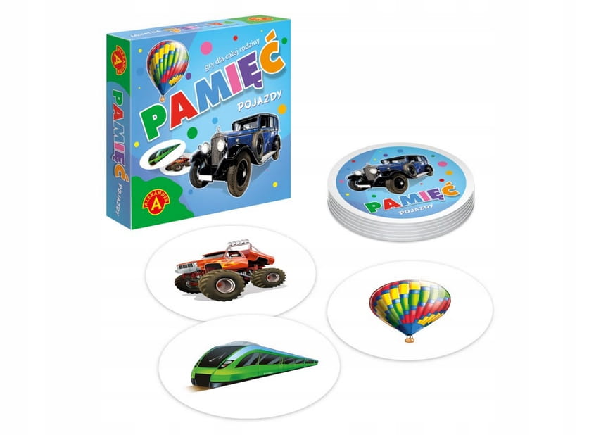 Gra Pamięć Pojazdy to jedna z najprostszych gier pamięciowych, skierowana już do najmłodszych graczy. Polega ona na rozłożeniu wszystkich obrazków rewersami do góry a następnie, kolejnym ich odsłanianiu w celu znalezienia dwóch identycznych obrazków. Jeżeli graczowi się to uda zabiera obrazki. Jeżeli nie odkłada je na miejsce. Wygrywa ten, kto zdobędzie ich najwięcej. W tej wersji gry motywem przewodnim zabawy są pojazdy.