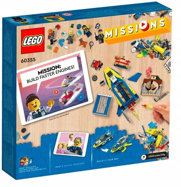 - Interaktywne przygody w cyfrowym świecie — zapoznaj dzieci z interaktywną zabawą LEGO® dzięki zestawowi LEGO® City Śledztwa wodnej policji (60355)